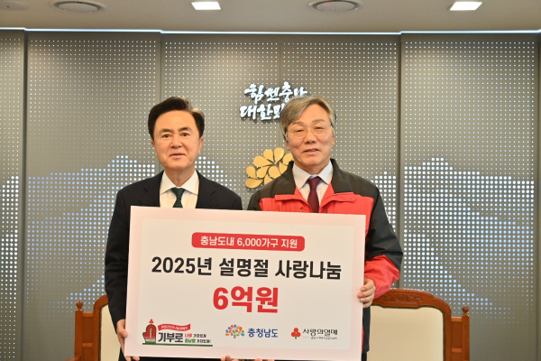 충남사회복지공동모금회의 기부금 6억원은 각 시군을 통해 기초수급자 등 취약계층 6000가구에 설 명절 지원금으로 전달할 계획이다.