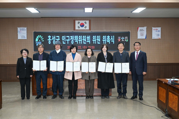 [충청뉴스 권상재 기자] 홍성군은 지난 22일 홍성군청 회의실에서 홍성군 인구정책위원회(위원장 조광희 홍성군 부군수) 위촉식을 갖고 본격적인 맞춤형 인구정책 수립 및 추진을 위한 첫걸음을 내디뎠다.