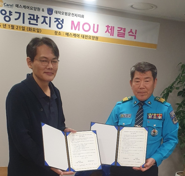 [충청뉴스 최형순 기자] 대전지역 어르신들의 건강한 노후를 지원하기 위해 "예스케어 요양원·주간보호센터(대표 조민)와 대덕모범운전자회(회장 윤상근)가 손을 맞잡았다"고 25일 밝혔다.