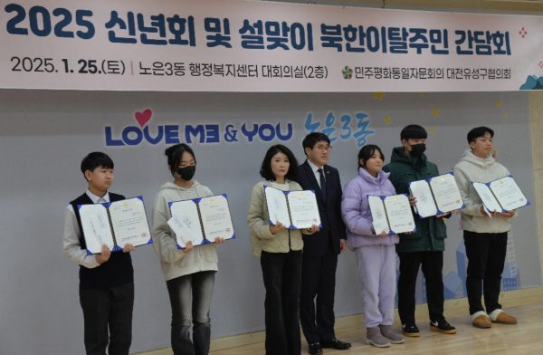 [충청뉴스 최형순 기자] 민주평화통일자문회의 대전유성구협의회(회장 이상욱)는 25일 2025 신년인사회 및 설맞이 북한이탈주민과의 간담회를 개최하고, 따뜻한 정을 나누는 시간을 가졌다.