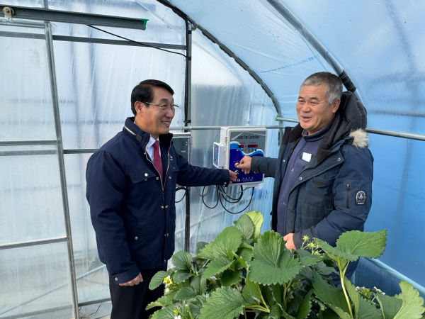 이용록 군수, 5일 홍북읍 봉신리 우광희씨 딸기농가 찾아 한파 예방 점검