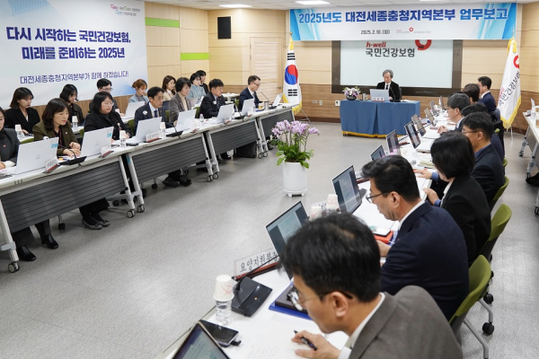 국민건강보험공단 대전세종충청지역본부(본부장 이정수)는 2월 10일 지역본부 7층 중회의실에서 정기석 이사장 등 30여 명이 참석한 가운데 ‘2025년 연두 업무보고회’를 개최했다.