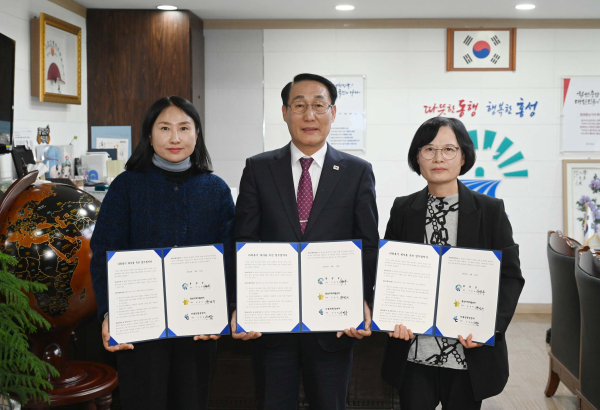군에 따르면 11일 다회용기 재사용 체계 구축과 취약계층 일자리 창출을 위하여 군수실에서 홍성지역자활센터, ㈜클린환경센터와 3자 업무협약을 체결했다.