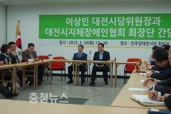민주통합당 대전시당과 대전지체장애인협회가 간담회를 갖고 장애인 정책 개발에 힘을 모으기로 했다.