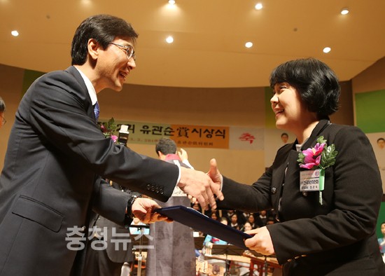 올해 유관순상에는 ‘(사)한국여성의 전화’(상임대표 정춘숙)가 선정돼 상장과 트로피, 상금 2000만원을, 유관순횃불상에는 공주사대부고 2학년 백운민 학생 등 10명이 선정돼 상장과 장학금 150만원을 이날 각각 받았다.