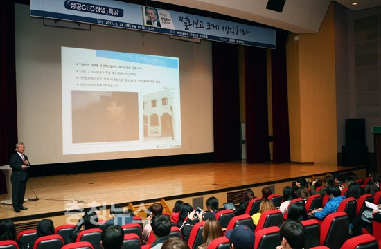 (주)금성백조주택 정성욱 회장이 배재대학교 21세기관 콘서트홀에서 ‘성공CEO경영 강좌' 에서 ‘멀리보고 크게 생각하라’는 주제로 특강을 진행했다.