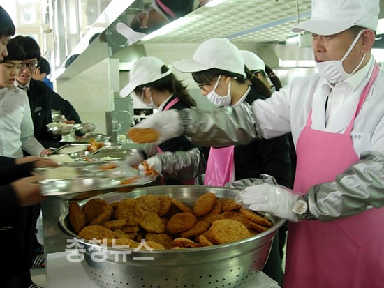 ▲ 구봉고 장제선 교장 제자사랑 배식장면