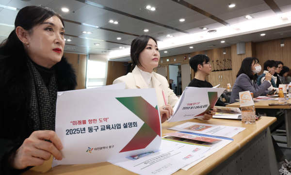 [충청뉴스 박영환 기자] 대전 동구는 14일 구청 대회의실에서 관내 초‧중‧고 학교장, 운영위원장 등 70여 명이 참석한 가운데, ‘2025년 교육사업 설명회’를 성황리에 개최했다고 밝혔다.