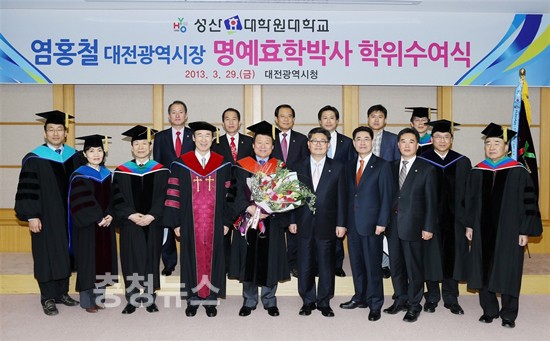 염홍철 대전시장이 효행장려 활동 및 효문화진흥원 유치 등 공로를 인정받아 성산효대학원대학교로부터 명예효학박사 학위를 받았다.