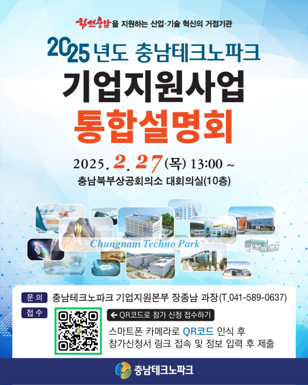 [충청뉴스 박동혁 기자] 충남테크노파크(충남TP)는 오는 27일 충남북부상공회의소에서 ‘기업 지원 사업 통합설명회’를 연다고 18일 밝혔다.