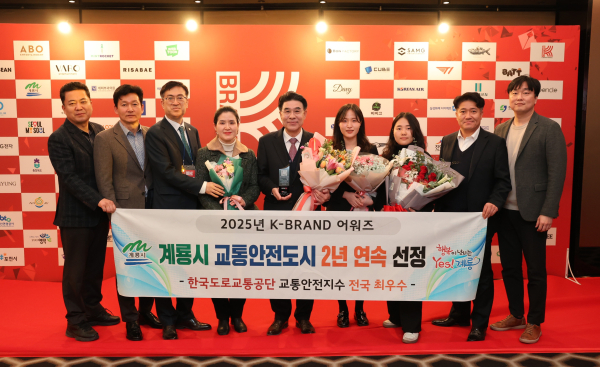 [충청뉴스 계룡 = 조홍기 기자] 계룡시(시장 이응우)는 19일 서울 더플라자호텔에서 열린 ‘2025 K-브랜드어워즈’에서 교통안전도시 부문 대상을 수상했다고 밝혔다.