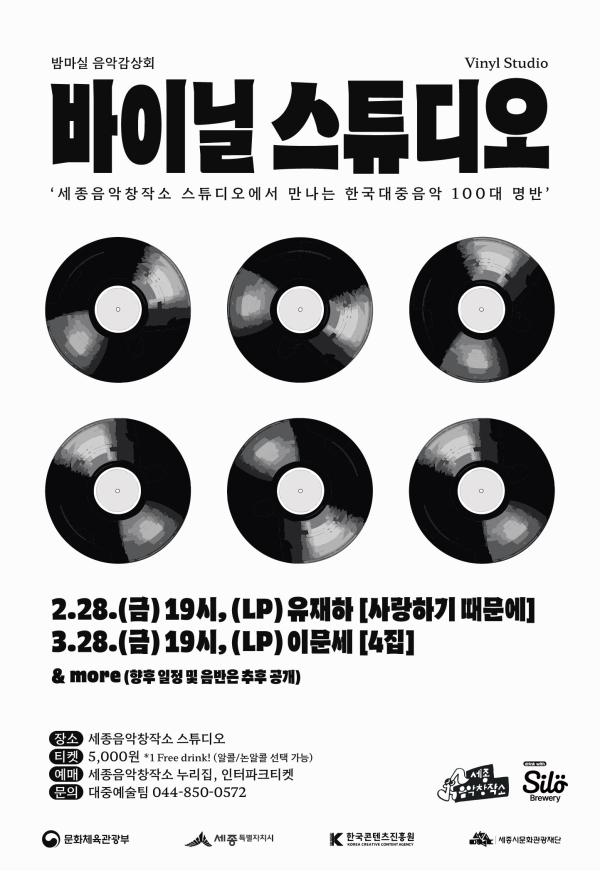 [충청뉴스 최형순 기자] 세종시문화관광재단(대표이사 박영국)은 오는 28일부터 야간 음악 감상 프로그램 '밤마실 음감회-바이닐 스튜디오'를 개최한다.