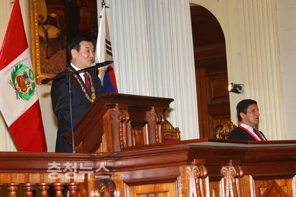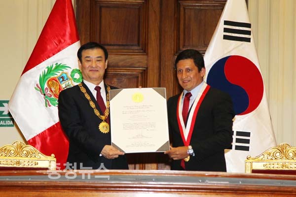 페루를 공식방문 중인 강창희 국회의장은 1일 페루 빅토르 이슬라 국회의장으로부터 양국 우호관계 확립에 기여한 공로로 페루 대십자 훈장을 수여받았다.