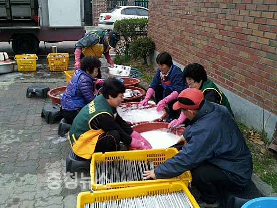 봄비가 내리는 2일, 중구자원봉사협의회 효도마차팀(팀장 이란숙)은 그릇 세척 등 지난해 11월부터 동절기를 맞아 운영을 중단했던 효도마차를 정비하고 3일부터 시작하는 무료급식을 빈틈없이 준비했다.
