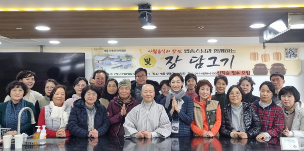 [충청뉴스 최형순 기자] 세종 전통문화체험관(관장 현우스님)은 23일 정월대보름을 맞아 사찰음식 전문가 법송스님을 초청하여 '빛 장 담그기 특강'을 성황리에 개최했다.