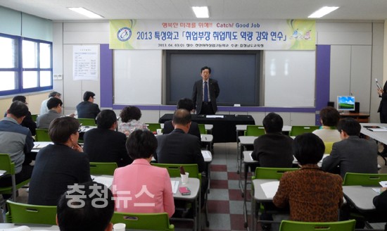 충남교육청은 천안여자상업고등학교에서 특성화고․마이스터고의 취업부장 41명을 대상으로 ‘2013 특성화고 취업지도 역량 강화 연수’를 실시했다.