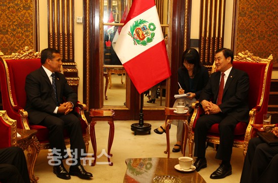 페루를 공식방문 중인 강창희 국회의장은 2일 페루 오얀타 우말라 (Ollanta Humala Tasso) 대통령을 만나 양국 간의 우호협력 관계 강화와 경제협력 방안에 대해 논의했다.