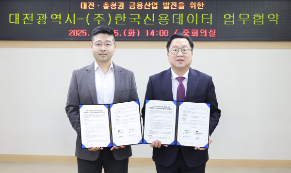 [충청뉴스 김용우 기자] 대전시와 한국신용데이터(KCD)는 25일 대전시청에서 제4인터넷전문은행인 ‘한국소호은행’ 설립을 위한 업무협약을 체결했다.