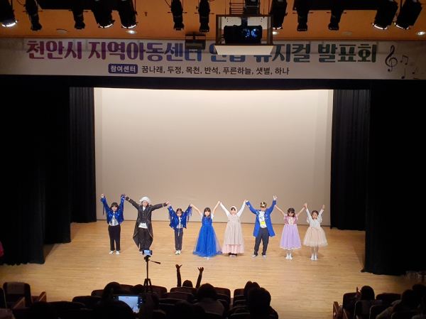 [충청뉴스 최형순 기자] 천안시 지역 아동센터 아이들이 갈고닦은 실력을 뽐내는 '천안시 지역 아동센터 연합 뮤지컬 발표회'가 성황리에 막을 내렸다.