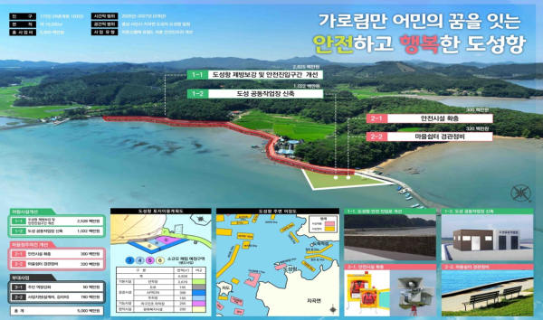 이 사업은 어촌의 경제·생활환경 개선 및 신규 인구 유입 유도 등 어촌의 활력을 높이기 위한 것으로, 해수부는 2027년까지 전국 어촌지역 300곳을 선정해 3조 원을 지원한다.