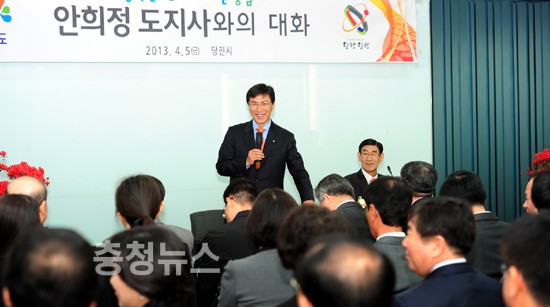 안희정 충남도지사는 5일 “당진시가 환황해권을 주도하는 물류·유통 중심도시, 수출 지향적 임해신산업지대, 해양 및 내륙관광휴양 중심지로 발전할 수 있도록 적극 지원하겠다”고 밝혔다.