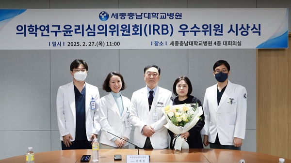 [충청뉴스 이성현 기자] 세종충남대병원이 의학연구윤리심의위원회(IRB) 우수위원 시상식을 개최했다고 27일 밝혔다.