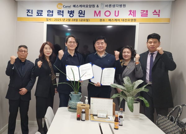 [충청뉴스 최형순 기자] 대전 지역 어르신들의 건강한 노후를 지원하기 위해 예스케어 요양원·주간보호센터(대표 조민)와 바른생각병원(병원장 전택수)이 손을 맞잡았다.