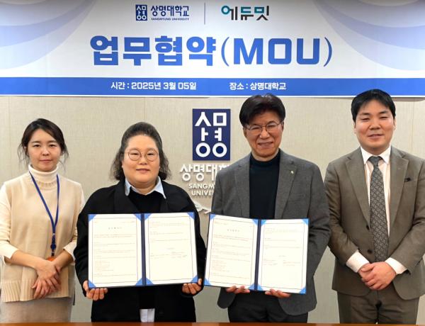 [충청뉴스 박동혁 기자] 상명대학교는 ㈜에듀밋과 지역 학생 미래 교육 발전을 위해 협력한다고 6일 밝혔다.