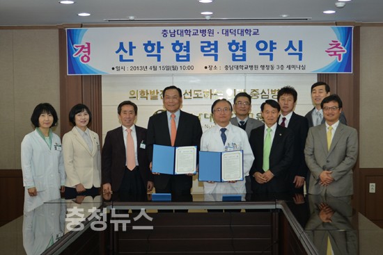 충남대학교병원(원장 송시헌)와 대덕대학교(총장 홍성표)는 15일 오전 행정동 3층 세미나실에서 산학협력을 통하여 공동의 발전을 도모하고자 산학협력 협약식을 개최했다.