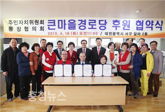 대전광역시 서구(청장 박환용) 갈마2동 주민자치 위원회(회장 박상근)와 통장협의회(회장 채수웅)는 지난 16일 경성큰마을 경로당에서 경로당 회원 등 50여명이 참여한 가운데 큰마을 경로당(회장 김진환)을 후원한다는 협약을 체결했다.
