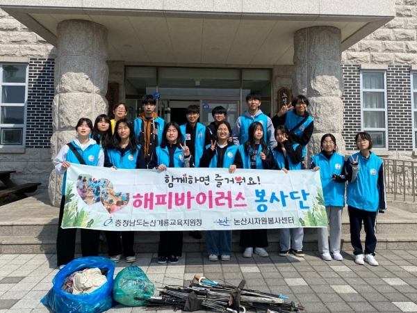 [충청뉴스 논산 = 조홍기 기자] 논산계룡교육지원청(교육장 박양훈)에서 운영하는 해피바이러스봉사단은 23일 노성중학교 학생 20명 및 노성면 거점 활동가와 함께 본격적인 봉사활동을 위한 연간일정을 계획하고 우리동네 폐우산 분리수거 활동을 하였다.