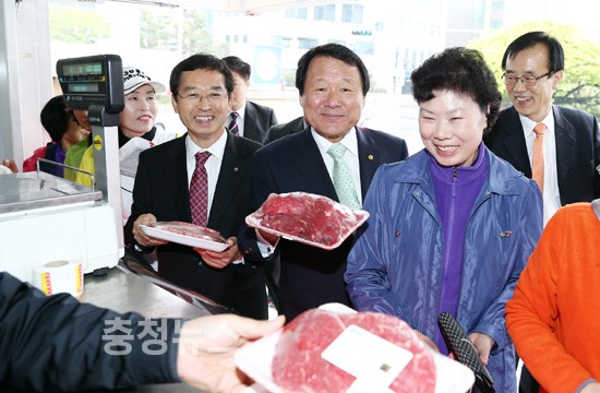 특히 축산물 소비촉진을 위한 돼지고기 시식행사와 함께 딸기 및 소고기 등 반값 할인 한정판매가 선착순으로 진행됐다.