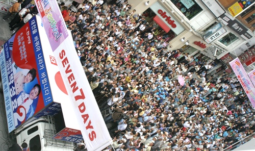 이어 박대표는 한나라당 으능정이 거리 유세에 참석, 당원과 지지자들에게 짤막한 연설을 한 후 자리를