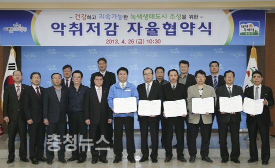 대덕구(구청장 정용기)는 지난 26일 구청 중회의실에서 대덕산업단지 지역의 악취해소를 위한‘악취관리종합대책’의 일환으로 10개 악취중점관리사업장과‘악취저감 자율협약’을 체결했다.