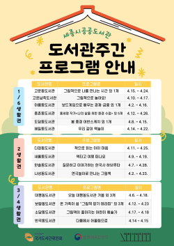 독서문화 행사에 대한 자세한 일정 및 내용은 세종시 공공도서관 누리집(https://lib.sejong.go.kr/portal/)에서 확인할 수 있다.