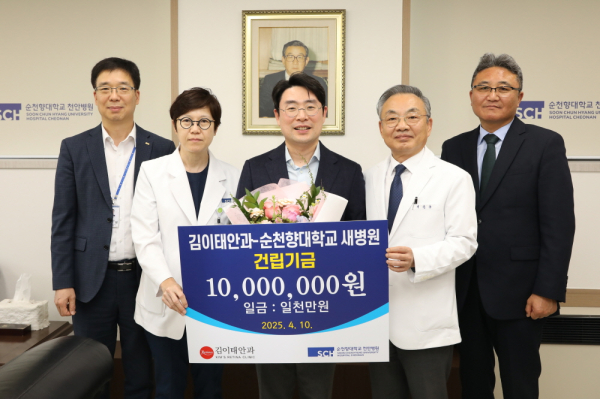 [충청뉴스 박동혁 기자] 김이태안과의원이 순천향대학교 부속 천안병원에 새병원 건립기금 1000만 원을 기부했다.