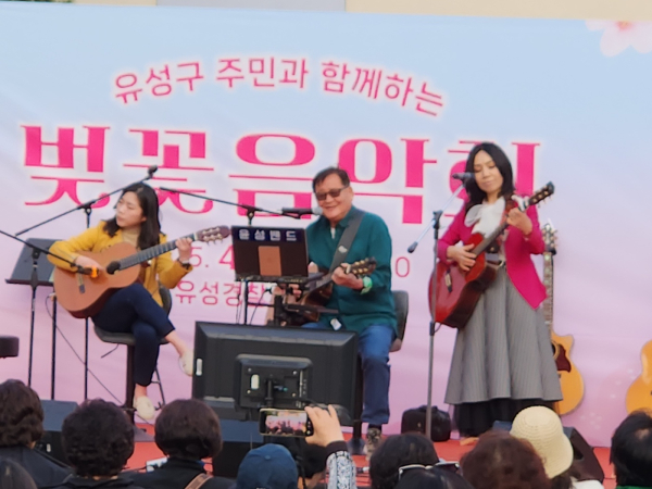 양하영 밴드가 특별출연한 벚꽃음악회는 이날 오후 5시부터 유성경찰서 뒷마당에서 진행됐다.