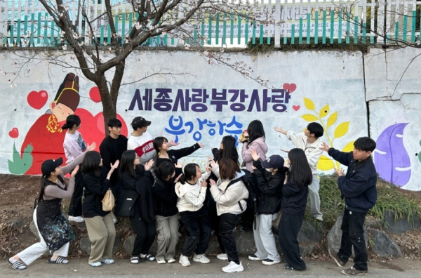 [충청뉴스 최형순 기자] 세종특별자치시 부강면(면장 최의헌)은 12일, 부강면 행정복지센터에서 홍익대학교 세종캠퍼스 미술 동아리 ‘Draw-All’과 협력하여 청사 벽화 그리기 봉사활동을 성공적으로 진행했다.