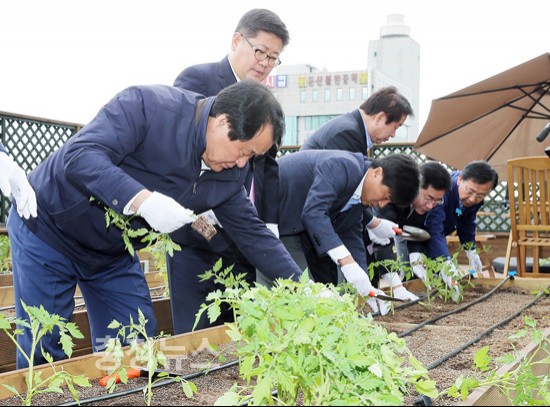 염 시장은 인사말에서 “옥상텃밭은 근교농업과 같은 맥락에서 실제 여러 가지 농산물을 재배하고 시민들의 쉼터 역할을 하는 녹색공간으로 열섬방지 및 냉․난방비 절감 등 생태적 환경조성에 크게 기여할 것”이라며 “이곳에서 농작물을 키우면서 생산적 여가활동과 생산물의 나눔 등을 통해 참여와 신뢰의 공동체 형성에 중추적인 역할을 하게 될 것”이라고 말했다.