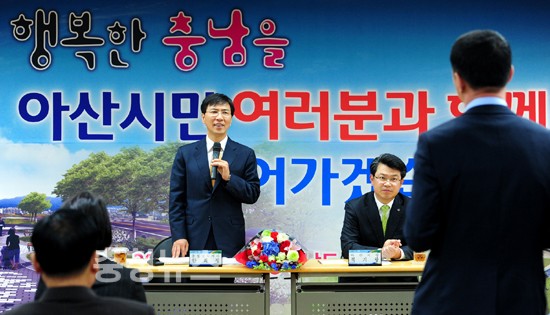 아홉 번째 시·군 방문지로 아산시를 찾은 안 지사는 이날 공무원과 기관장, 지역리더 등과 잇달아 대화를 갖고, 아산지역 현안을 들은 뒤 발전 방안을 모색했다.