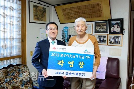 지난 2일 세종특별자치시(시장 유한식.이하 세종시)에 곽영창(98, 금남면) 어르신이 불우이웃을 위해 써달라며 현금 3,100만원을 기탁했다.