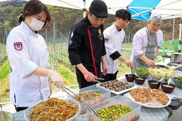 식사는 서양조리명장인 목원대 이기성 교수와 외식조리·제과제빵학과 학생들이 준비했다. 이들은 한식을 기본으로 세계 각국의 메뉴를 더한 요리 50여가지를 만들었다.