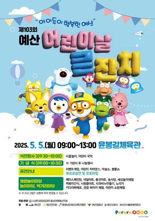 제103회 예산 어린이날 큰 잔치 홍보 포스터