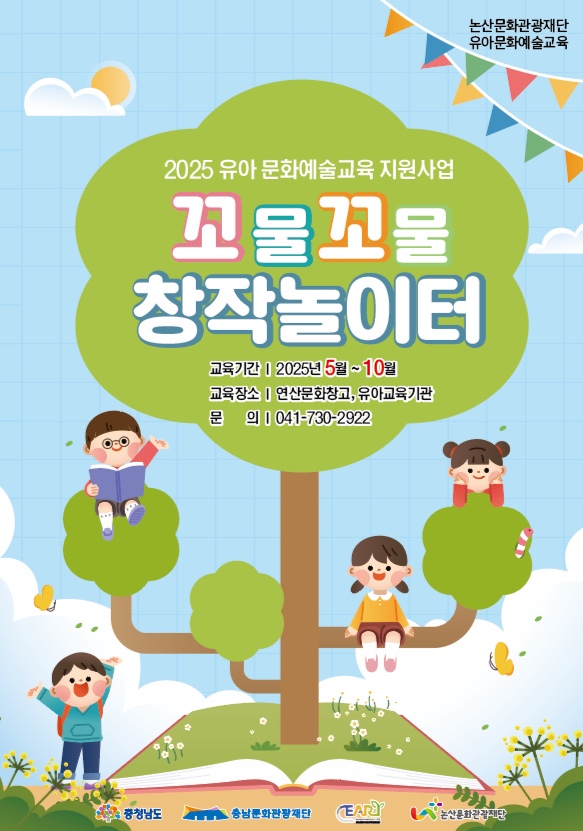 [충청뉴스 논산 = 조홍기 기자] (재)논산문화관광재단이 유아 대상 문화예술교육 프로그램인 <꼬물꼬물 창작놀이터>에 참여할 유아교육기관을 모집한다.