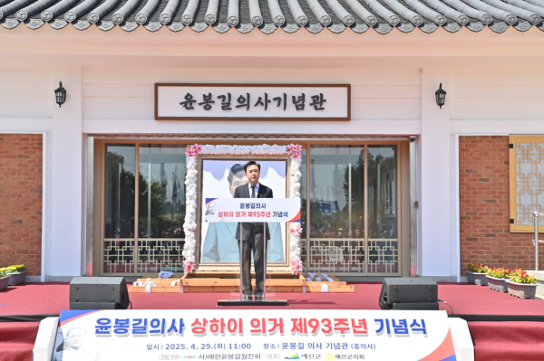 김 지사는 29일 예산 충의사에서 열린 ‘매헌 윤봉길 의사 상해 의거 제93주년 기념제 및 기념식’에 참석해 “한 사람의 용기가 역사를 바꾸고 한 사람의 결단이 민족의 자존심을 일깨웠다”라면서 윤 의사에 경의를 표했다.