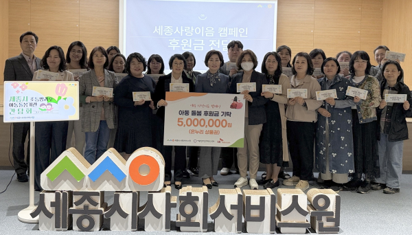 한편, 세종사랑이음 캠페인은 세종시사회서비스원과 세종창조경제혁신센터가 협력하여 지역 내 민간 기업의 자원을 발굴하고 연계하여 관내 사회서비스 기관의 지속 가능한 운영을 지원하는 나눔 기반의 협력 프로젝트이다.