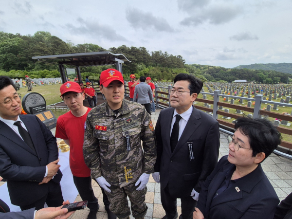 특히 박 원내대표는 해병대 예비역들과 해병대원 순직 사건의 피해자인 고(故) 채수근 상병의 묘역을 찾아 참배했다.