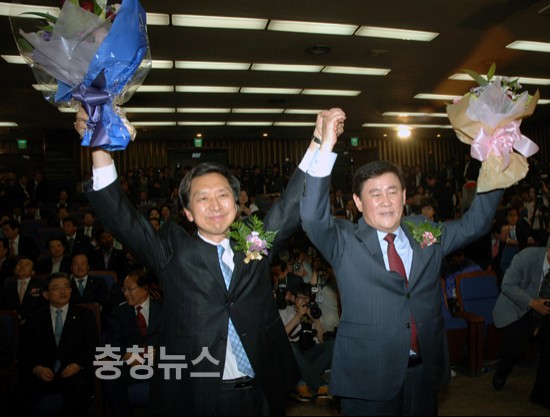 ▲ 좌부터- 전병현 원내대표와 김한길 당대표