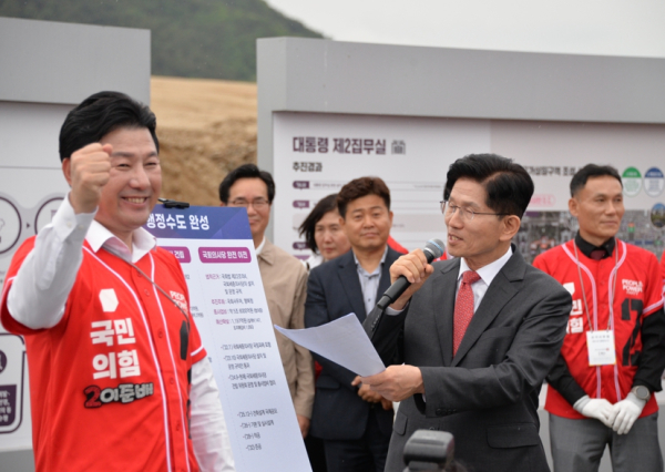 [충청뉴스 최형순 기자] 국민의힘 김문수 대통령 후보는 16일 오후, 세종 국회 세종의사당 부지를 방문해 행정수도로서의 위상을 확립하고, 나아가 세종시를 역사상 첫 번째 ‘서울 밖 서울’로 조성, 충청권의 빛나는 미래를 열어갈 계획을 밝혔다.