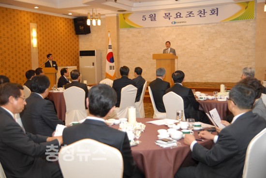 지역 주요인사 60여명 참석… 경제발전 논의 대전상공회의소(회장 손종현)는 16일 오전 유성호텔 3층 킹홀에서 지역발전을 선도하는 기관단체장들의 최대 정례교류회인 ‘2013년 5월 목요조찬회’를 개최하고, 지역 현안사업의 원활한 추진과 경제발전에 대한 상호 의견을 교환했다. ▲ 5월 목요조찬회 이날 조찬회에는 손종현 대전상공회의소 회장을 비롯해 염홍철 대전광역시장, 유한식 세종특별자치시장, 정용선 대전지방경찰청장, 곽영교 대전광역시의회 의장, 이충재 행정중심복합도시건설청장, 최영수 대전지방공정거래사무소장 등 지역 주요인사 60여명이 참석했다. 저작권자 © 충청뉴스 무단전재 및 재배포 금지 최온유 기자 다른기사 보기 기사가 마음에 드셨나요? 충청뉴스 좋은 기사 후원하기 1,000원 3,000원 5,000원 10,000원 30,000원 50,000원 직접입력 비회원 약관동의하기 ※ 소중한 후원금은 더 좋은 기사를 만드는데 쓰겠습니다.